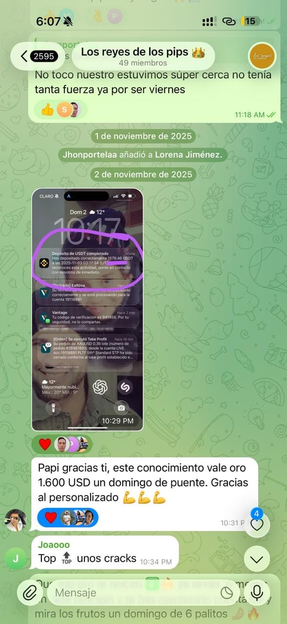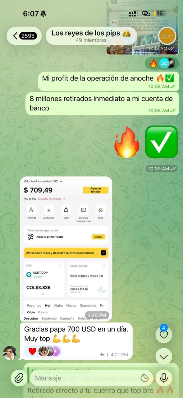 Las señales y el contenido se comparten directamente en el grupo privado de Telegram.